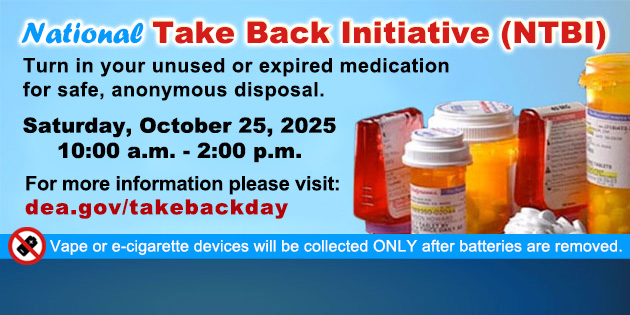 10/21/2025: ATTORNEY GENERAL, DEA, DEPARTMENT OF LAW ENFORCEMENT AND OTHER LAW ENFORCEMENT AGENCIES PARTNER FOR NATIONAL PRESCRIPTION DRUG TAKE BACK DAY (Flyer)